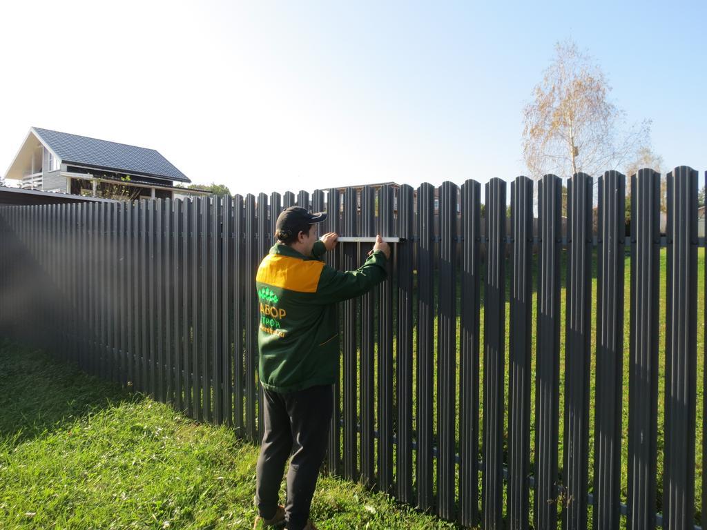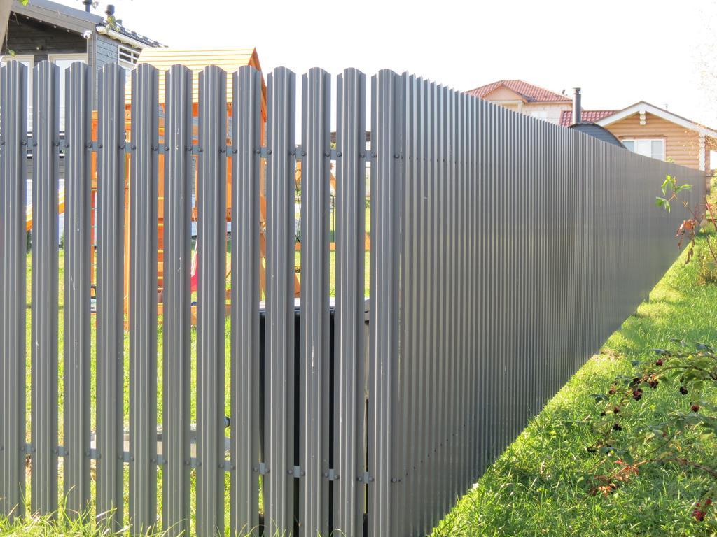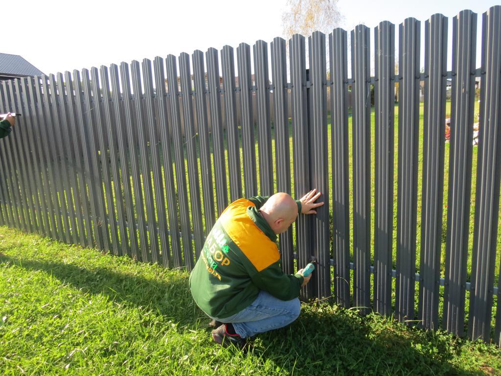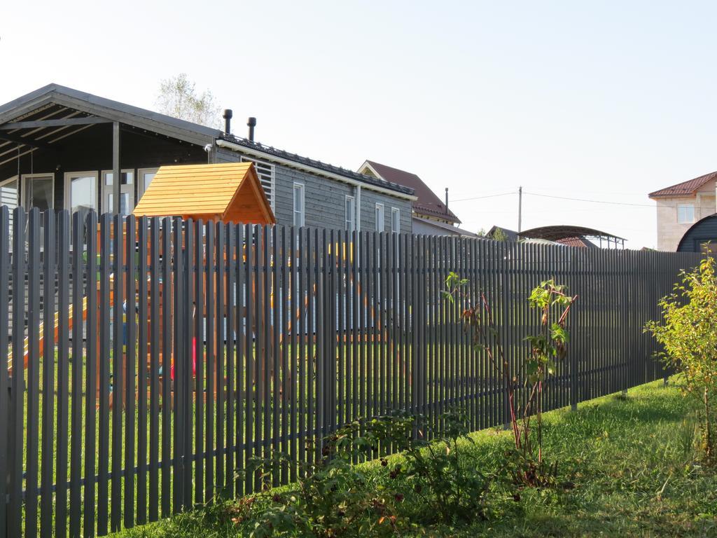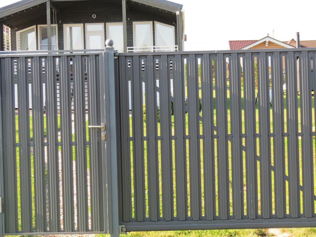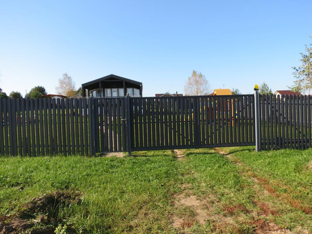 Откатные ворота из евроштакетника на винтовых сваях (цена на бетонном основании +20000р)